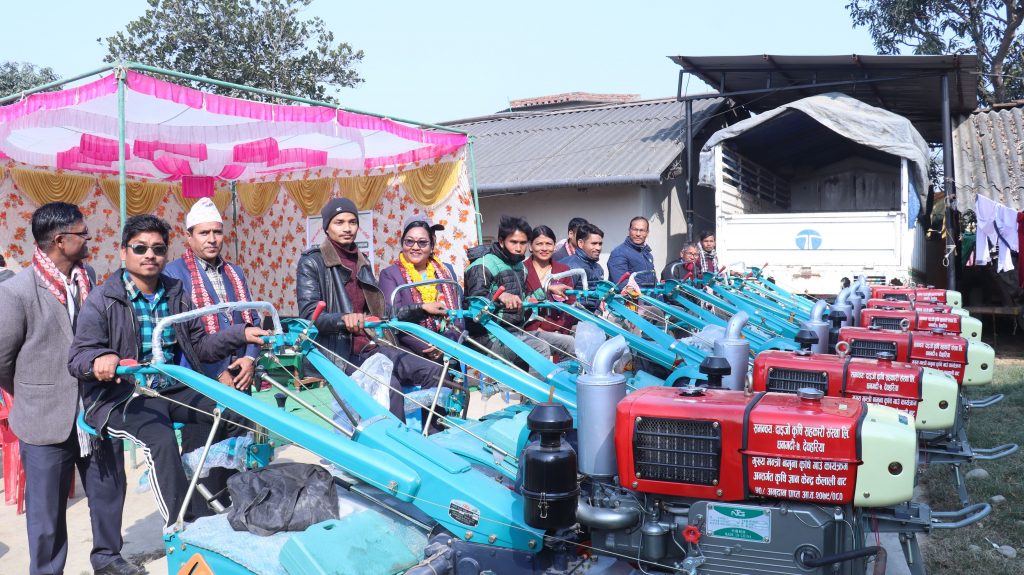 सदुरपश्ञ्चिम प्रदेश भुमिव्यवस्था तथा सहकारी पुर्व मन्त्रि विनिता चौधरीले दाइजो कृषि सहकारी संस्थामा अबद्ध किसानहरुलाई सनिबारका दिन एक कार्यक्रमका विच कृषि यन्त्र हस्तान्तरण गर्नुभयो । मन्त्री चौधरी कार्यक्रमको प्रमुख अतिथी रहनुभएको हो । कार्यक्रमलाई संवोधन गर्दै वहाँले भनिन “सुदुरपश्चिप प्रदेश सरकारले कृषि तथा पशुपञ्छि एकिकृत कार्यक्रम भनेर यहाँ मात्र नभएर सातैवाट प्रदेशमा एउटा ठुलो प्रजेक्टको रुपमा नमुना बनाउनु पर्छ भनेर ८८ वटा स्थानिय तहमा एक एक वटागरी कार्यक्रमको शुरुवात गरेका थियाै” ।