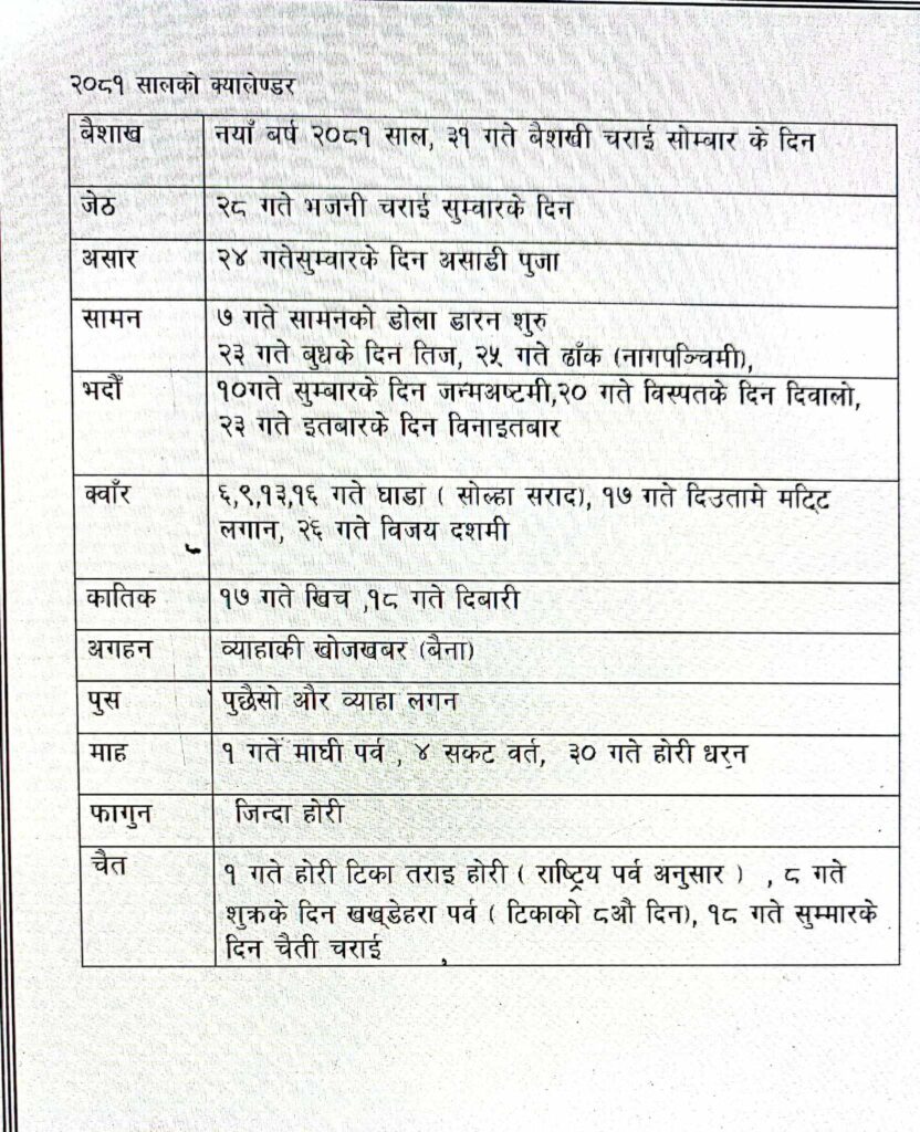 ६) विनाइतबार भादौ शुक्लपक्षको पहिलो इतबार तर प्रतिपदाको दिन आइतबार परेमा अर्को अइतबार मनाउने ।