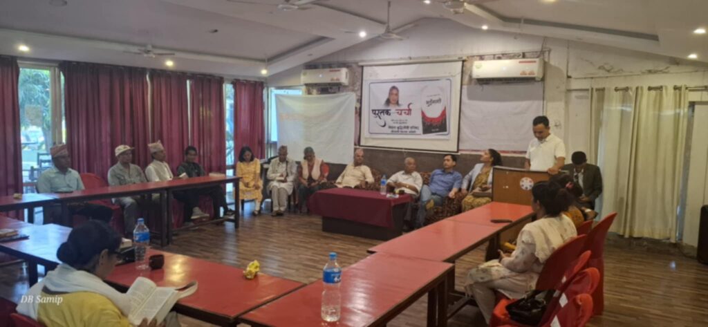 कार्यक्रममा सचितानन्द जोशी र यज्ञराज ढुंगानाले पुस्तक माथी चर्चा गरेका थिए । नेपाल बुद्धिजीवी परिषद्, कैलालीका अध्यक्ष प्रकाश छेडालको अध्यक्षतामा सम्पन्न कार्यक्रमको संचालन सचिव एकेन्द्र भण्डारीले गरेका थिए ।