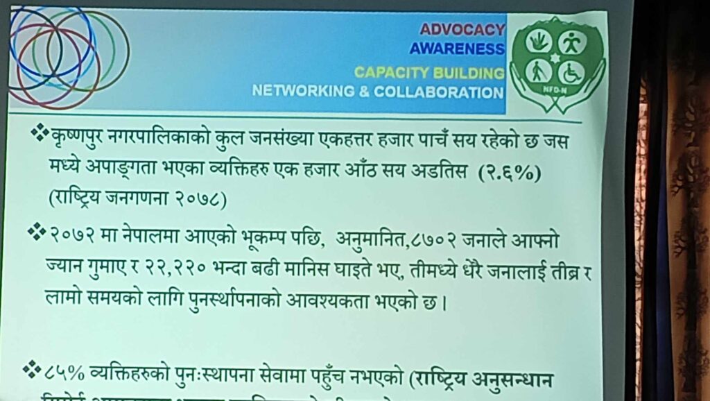 अतिथि कृष्णपुर नगरपालिका का प्रमुख प्रशासकीय अधिकृत ,स्वास्थ शाखा प्रमुख ,र स्थानीय अपाङ्ग हरु को उपस्थिति रहेको थियो।