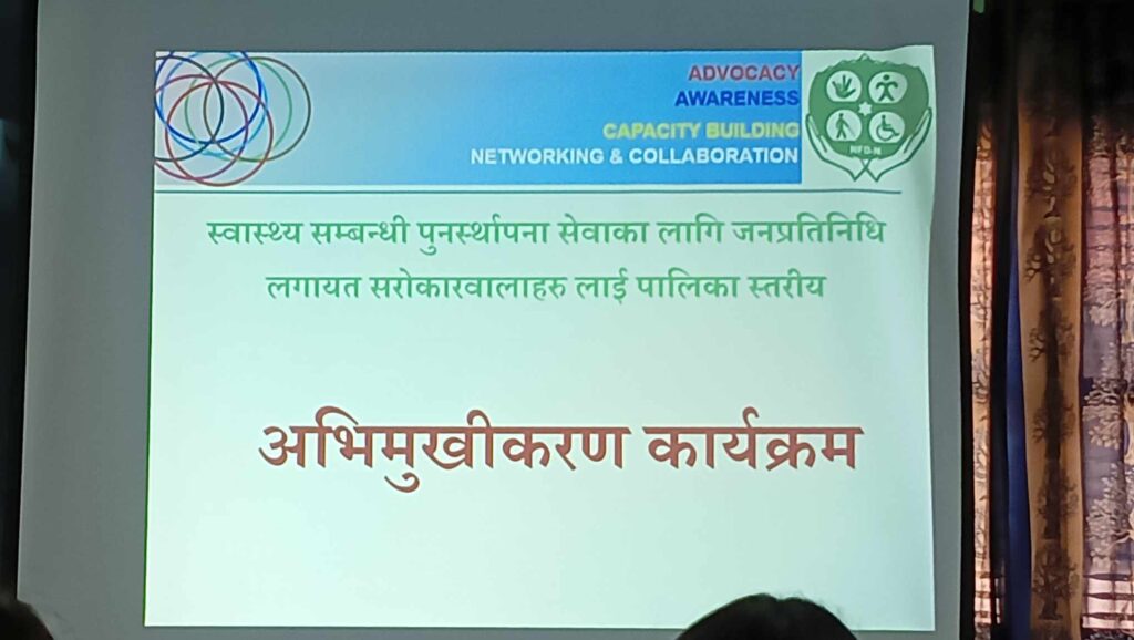 उमेश राना/धनगढी:- कञ्चनपुर को कृष्णपुर नगरपालिका मा १ दिने स्वस्थ सम्बन्धी पुनर्स्थापना सेवा का लागि जनप्रतिनिधि सरोकारवाला लाई अभिमुखिकारण कार्यक्रम सम्पन्न भएको थियो। कार्यक्रममा सभापति कृष्णपुर नगरपालिका की नगर उपप्रमुख द्रोपती राना रहनु भएको थियो ।