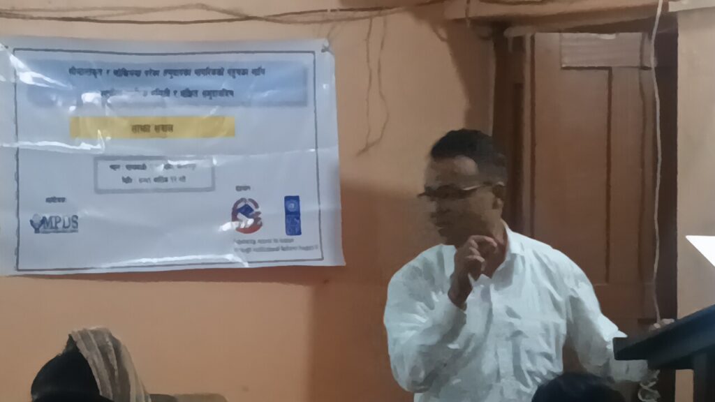 कार्यक्रम २ दिन सम्म संचालन भएको थियो भने पहिलो दिन सीमान्तकृत र जोखिम मा परेका समुदायका नागरिकको चेतना तथा क्षमता गर्न स्थानीय तह मा सेवा प्रवाह र हकमा जनसहभागितामा अभिवृद्धिका लागि कानुनी मेला कार्यक्रम लालझाडी गाउँपालिका को वडा नं ६ को रामेश्वर विद्यालयमा भएको थियो भने दोस्रो दिन साझा सवाल लालझाडी गाउँपालिका को सभा हल मा भएको थियो। कार्यक्रम मा समूदाय मा रहेको विभिन्न किसिमका मुद्दा ,झै झगडा ,घरायसी झगडा,को र न्याय सम्बन्धी परामर्श तथा सरसल्लाह दिई महिला को गोप्य कुरालाई उजागर गरेर समुदाय मा चेतना फैलाउने जस्ता क्रियाकलाप यस संस्था ले गरिरहेको MPDS संस्था का प्रमुख धन बहादुर भण्डारी ले जानकारी गराउनु भएको थियो।
