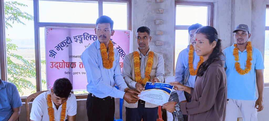 कञ्चनपुर को लालझाडी गाउँपालिका वडा नं ४ मा रहेको भृकुटी बोर्डिङ्ग स्कूल ले ३ तिने उद्घोषक तालिम समापन गरेको छ ।पूर्व विद्यार्थी समाज को आयोजनामा १४ गते देखि सञ्चालन भएको तालिम मा १६ गते सम्पन्न भएको थियो।समापन समारोह सभापति पूर्व विद्यार्थी समाज का अध्यक्ष भूपेन्द्र राना रहनु भएको थियो भने प्रमुख अतिथि भृकुटी बोर्डिङ स्कुल का MD भक्ता राना,विशिष्ठ अतिथि लालझाडी गाउँपालिका वडा नं ४ का पूर्व भल्मन्सा जगन्नाथ राना,नारायन राना रहनु भएको थियो।