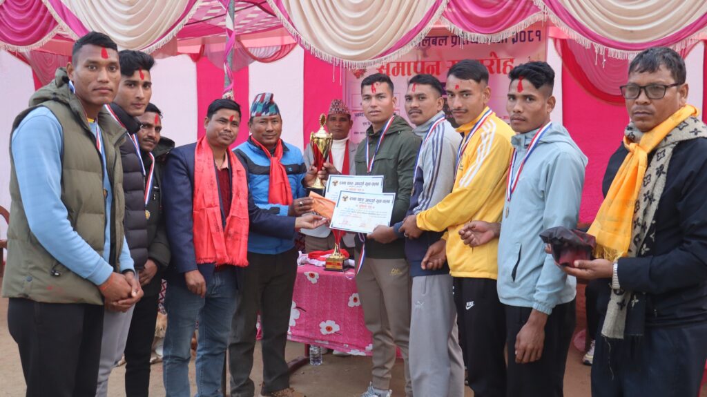 ज्ञानु राना/धनगढी, पौष २८ – रानाथारु आदर्श युवा क्लबको आयोजनामा भएको खुल्ला पुरुष भलिबल प्रतियोगिता भव्यताका साथ सम्पन्न भएको छ। पौष २४ गतेदेखि सुरु भएको प्रतियोगिताको फाइनल खेल पौष २८ गते सम्पन्न भयो।