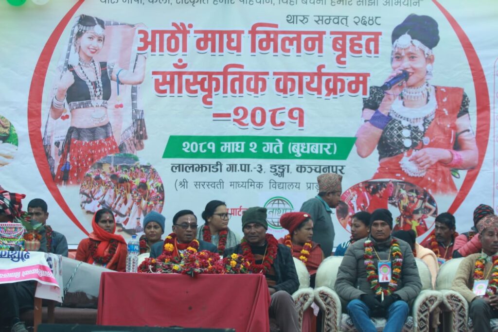 कञ्चनपुरको लालझाडी गाउँपालिका वडा नं ३ डुङ्गाको सरस्वती माध्यमिक विद्यालय को प्राङ्गण मा आठौ माघी मिलन बृहत सांस्कृतिक कार्यक्रम सम्पन्न भएको छ। कार्यक्रम मा सभापति आठौ माघी मिलन बृहत सांस्कृतिक कार्यक्रम का संयोजक वीर बहादुर चौधरी रहनु भएको थियो।