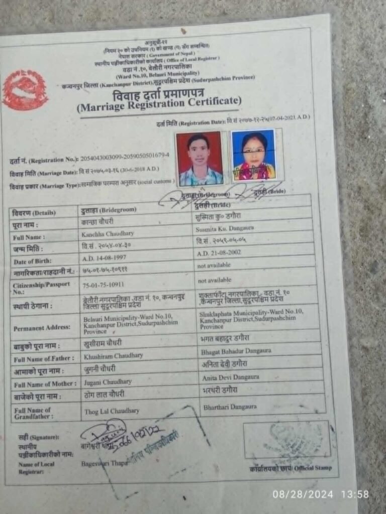 कञ्चनपुर । बेदकोट नगरपालिका–७ सुडामा कोठा भाडामा बस्ने सुस्मिता चौधरीले चार वर्षको छोरा छाडी सम्पर्क विहीन भएकी छिन्। बेलौरी नगरपालिका–१० भुडा घर भएका कान्छू चौधरी सँग ५ वर्ष अगाडी २०७५ सालमा सुस्मिता चौधरीले विवाह गरेकी थिइन ।