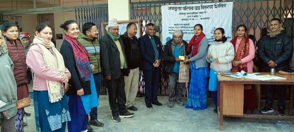 कञ्चनपुरको कृष्णपुर नगरपालिकामा पहिलो पटक वडा स्तरका शिविर संचालन गरेर अपाङ्गता भएका ब्यक्तिहरुका लागि परिचय पत्र कार्यक्रम सम्पन्न भएको छ। नेपाल राष्ट्रिय समाज कल्याण संघ NNSWA कञ्चनपुर र वर्ल्ड भिजन ईन्टर नेशनल नेपाल को साझेदारीमा कृष्णपुर नगरपालिमा सञ्चालन भएको वाल संरक्षण सामुदायीक सँगलान्तमुखी स्पोन्सर शिप कार्यक्रमको पैरवी सहजीकरण तथा समन्वय मा कृष्णपुर नगरपालिका ले सञ्चालन गरेको शिविर बाट कृष्णपुर का थप ७० जना अपाङ्गता भएका व्यक्ति हरुले अपाङ्गता परिचय पत्र प्राप्त गरेका छन्।