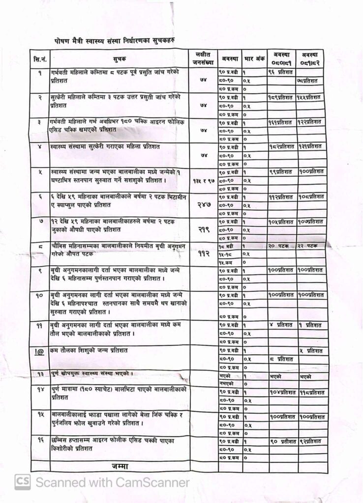 स्वास्थ्य चौकीले मातृ र नवजात स्वास्थ्य सेवा, स्तनपान प्रवर्द्धन, पोषणसम्बन्धी परामर्श सेवा, बालबालिकाको वृद्धि निगरानी, पोषण शिक्षासम्बन्धी कार्यक्रम तथा नियमित पोषण मूल्यांकन लगायतका क्षेत्रमा उल्लेखनीय कार्य गरेको छ।