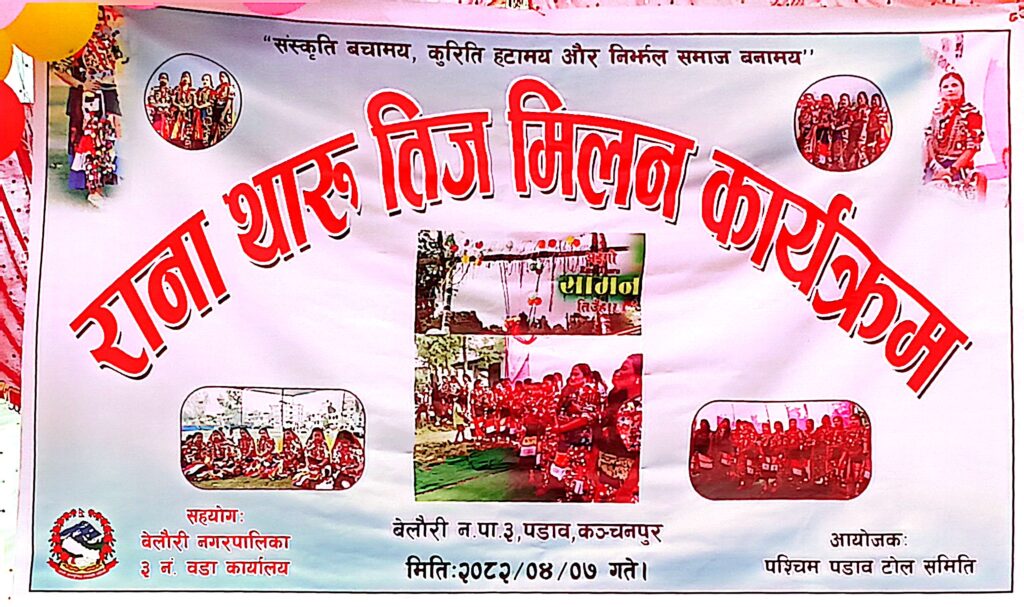 कञ्चनपुरको दक्षिणी क्षेत्र, बेलौरी नगरपालिका–३ स्थित पडावमा रानाथारु समुदायको तीज मिलन कार्यक्रम भव्यताका साथ सम्पन्न भएको छ। पश्चिम पडाव टोल समिति को आयोजनामा र वडा नं ३ को सहयोग मा सो कार्यक्रम सम्पन्न भएको थियो। सांस्कृतिक पहिचान र समुदायबीचको एकता मजबुत पार्ने उद्देश्यले आयोजना गरिएको सो कार्यक्रम रानाथारु समुदायको परम्परागत झल्को दिने खालको रह्यो।