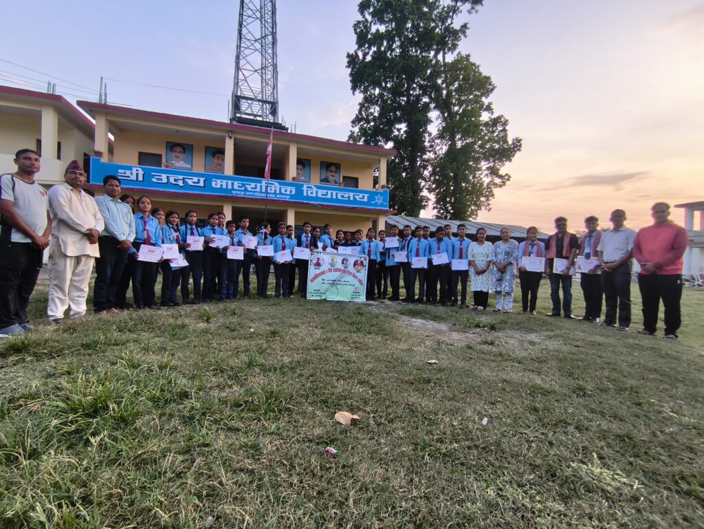 कञ्चनपुर — उदय बाल क्लबको आयोजनामा र उदय माध्यमिक विद्यालयको सहकार्यमा सञ्चालित ७ दिने उद्घोषण तथा नेतृत्व विकास तालिम आज एक विशेष कार्यक्रमका बीच औपचारिक रूपमा सम्पन्न भएको छ।