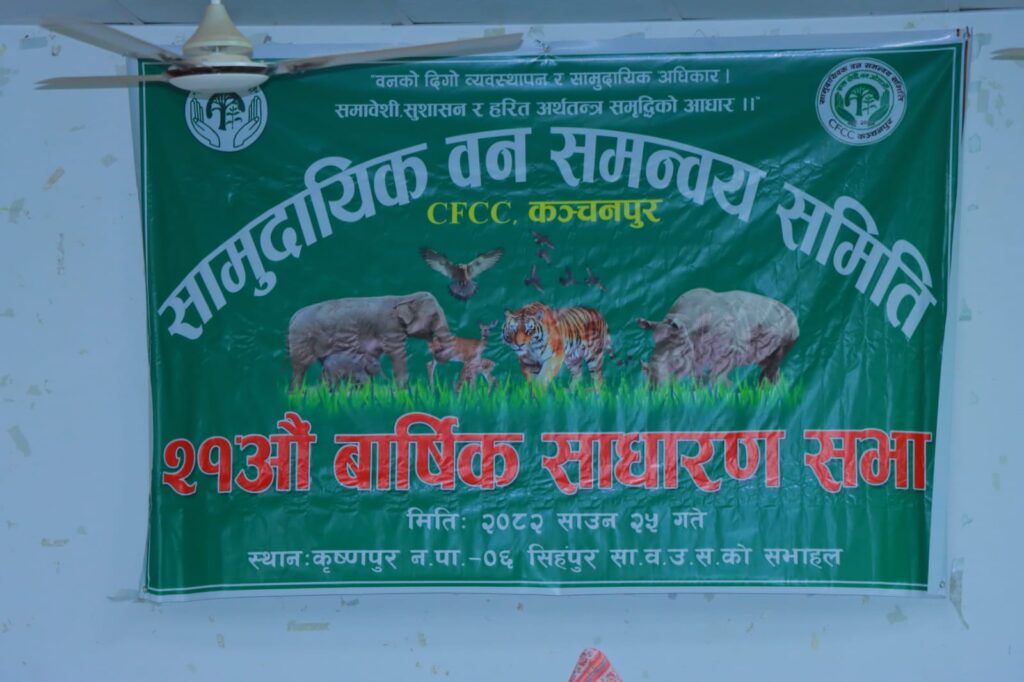 आइतबार कृष्णपुर नगरपालिका ६ सिहपुर सामुदायिक वनमा आयोजित बार्षिक साधारण सभामा सामुदायिक वन समन्वय समिति(सिएफसीसी)का अध्यक्ष महेश दत्त जोशीले पर्यावरण, बन्यजन्तुको सरक्षण, उपभोक्ताको हक अधिकार, सामुदायिक वनको सुशासनदेखिका लालझाडी मोहना जैविक मार्ग क्षेत्रमा सरक्षणका विविध पक्षमा कामकाज गर्दै आएको बताए ।
