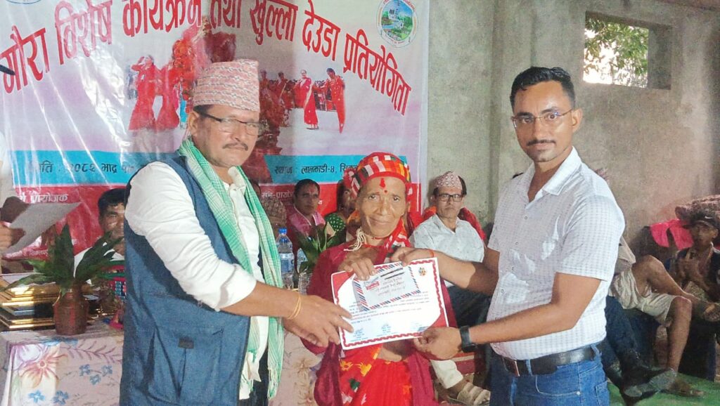 कञ्चनपुरको लालझाडी गाउँपालिका–४, सिकलपट्टि जाईमा तीनदिने गौरा विशेष कार्यक्रम तथा खुल्ला देउडा प्रतियोगिता भव्य रूपमा सम्पन्न भएको छ। लालझाडी गाउँपालिकाको आर्थिक सहयोगमा सम्पन्न उक्त सांस्कृतिक कार्यक्रमले स्थानीय संस्कृतिको जगेर्ना तथा संरक्षणमा महत्वपूर्ण भूमिका खेलेको आयोजकले बताएका छन्।