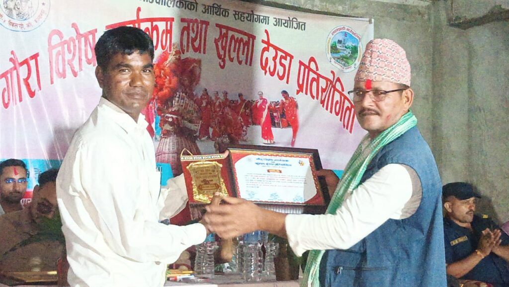 तीन दिनसम्म चलेको कार्यक्रममा खुल्ला देउडा प्रतियोगिता आयोजना गरिएको थियो, जसमा विभिन्न टोल–टोल तथा छिमेकी क्षेत्रबाट आएका युवायुवतीहरूको उत्साहजनक सहभागिता रहेको थियो। देउडा गीत, नृत्य र परम्परागत लयमा आधारित यो प्रतियोगिताले गौरा पर्वको सांस्कृतिक महत्त्वलाई झल्काउने काम गरेको छ।