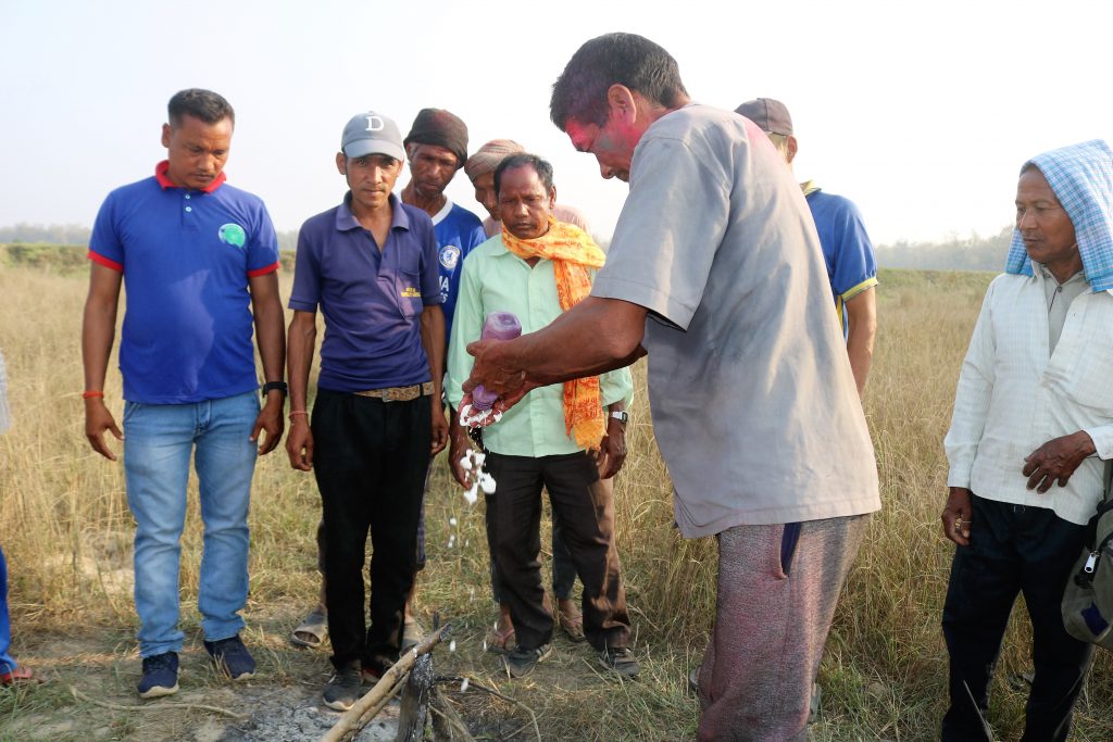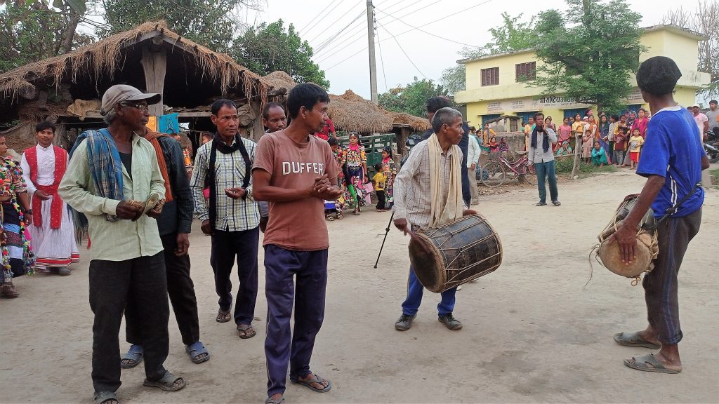 शिक्षक बासमति रानाक कहाइ अनुसार  माघ महिनक पुर्णमासिके दिन होरीमे गाँव भरसे उठाउभौ भेट – चामर, तेल , अगर बत्ती , फुल ) के पधना या भलमन्साके घरमे पुरी पकाएके लैजात हए , एक महिनाभर होरी धरत हए । होरीमे कन्डा लाहीको टिटारो इकट्ठा करके होरीक पुतला बनात हए । एक महिना पच्छु फागुपुर्णिमाके दिन फिरके गाँव भरसे उठाउभौ भेट – चामर, तेल , अगर बत्ती , फुल ) के पधना या भलमन्साके घरमे पुरी पकाएके लैजात हए होरीक झुका – पुतला ) के पाँच फेरा लगायके होरीमे आगी लगात हए तौ जाइके पच्छुसे सब गाँवके लोग आगी लगातहएँ । होरीमे लागनपती बहुत रौनक होत हए । होरीमे आगि लागान गाउभरके आदमी जुटत हए और सब मिलके होरीक दहन करत हए ।