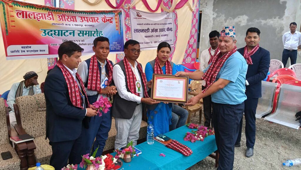 नरेश राना,०४ बैशाख । लालझाडी गाउँपालिकामा शंकरपुर स्वास्थ्य चौकी को प्राङ्गणमा लालझाडी गाउँपालिकाको आयोजना, च्यारिटी हेल्थ फाउन्डेसन नेपालको सहयोग र वडा नं २ का अध्यक्ष आशाराम रानाको अध्यक्षतामा आँखा उपचार केन्द्रको मंगलबार एक कार्यक्रमका बिच उद्घाटन भएको छ ।
