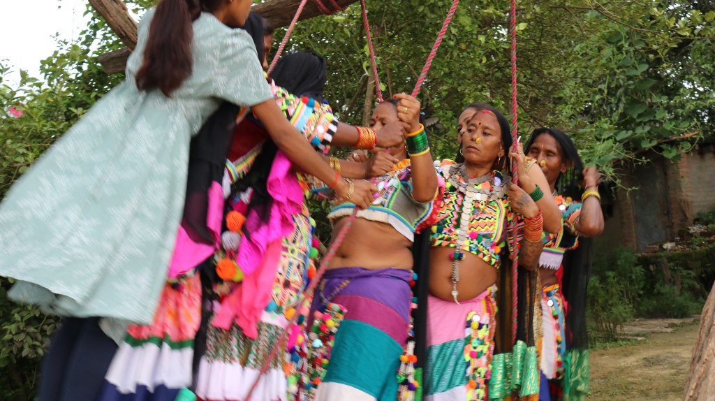 चारवटा काठको खाँबोमा डोरीमा काठको फल्याक बाँधेर पिङका रूपमा प्रयोग गरिन्छ।” पिङ खेल्ने दिदीबहिनीको उत्साह थप्नका लागि ठूलो आवाजमा दाजुभाइले गीत गाउने चलन यस समुदायमा रहेको छ। यसबाट दिदीबहिनी र दाजुभाइबीच आत्मीयता बढ्ने भएकाले यसलाई बढी महत्व दिइने गरिएको धनगढी उपमहानगर पालिका ७ का भलमन्सा जगन्नाथ रानाले बताए। दिदीबहिनीले पानीसमेत नपिएर निराहार बर्त बसी दाजुभाइको दीर्घायुको कामना गर्ने गर्दछन्।