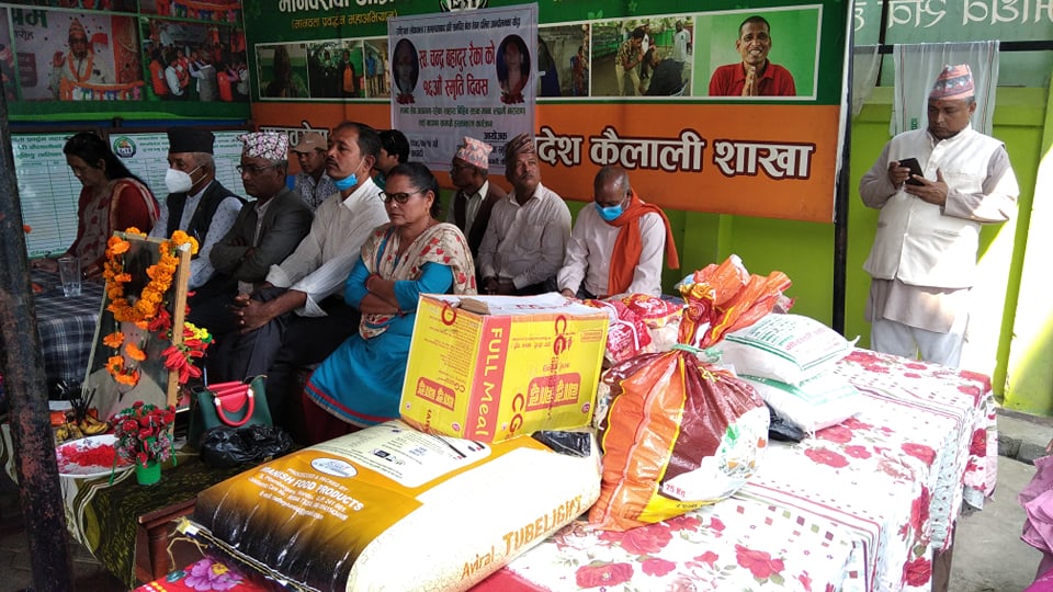 यसै विच रैकाको स्मृति दिवसको अवसरमा धनगढी स्थित मानव सेवा आश्रममा रहेका ७० जना साहारा विहिन सडक मानवहरुका लागि नगद रु ५ हजार,दिवा खाना र खाद्य तथा पोषण सामाग्री सहयोग गरिएको छ । जस अन्र्तगत चामल २५ केजी,तेल ५ लिटर,दाल ५केजी,भुजा १० प्याकेट,चिउरा ६ प्याकेट,पिठो १० केजी,आलु १० केजी,चाउचाउ १ पेटी,नुन २ प्याकेट,मास्क २ प्याकेट,सोयाविन ६ प्याकेट लगायतको खाद्य सामाग्री सहयोग गरिएको थियो ।
