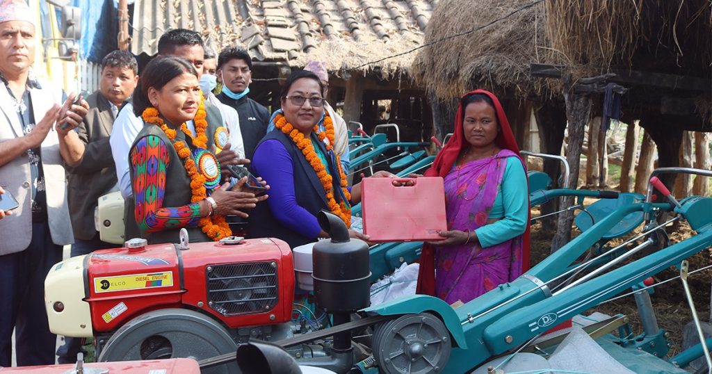 सुदुरपश्चिमका किसानहरुलाई कृषि यन्त्र अनुदाममा दिएर आत्मानिर्भर बनाएका छौ, सुदुरपश्चिम प्रदेश भुमि व्यवस्था कृषि तथा सहकारी मन्त्री माननिय विनिता चौधरीले एक कार्यक्रम मार्फत बताउनु भयो । दायिजो कृषि सहकारी संस्थामा अबद्ध किसानहरुलाई कृषि यन्त्र हस्तान्तरण कार्यक्रममा उक्त कुरा बताएकी हुन ।