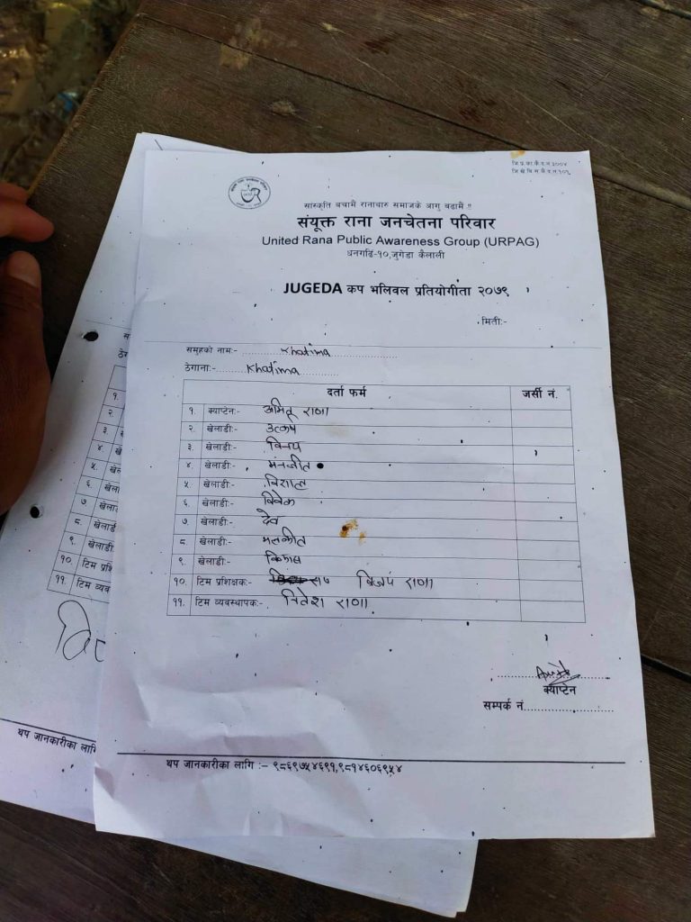 खेलको लागि पूर्व वन तथा वातावरण मन्त्री माननीय नारद मुनि रानाले १ लाख रुपैयाँ दिएर सहयोग गर्ने प्रतिबद्धता जनाएका छन्। उक्त रकम माननीय नारद नुमी राना ले आफ्नै खल्तीबाट सहयोग गर्ने कुरा संयुक्त राना जनचेतना परिवारका अध्यक्ष रवि रानाले जनाएका छन् ।