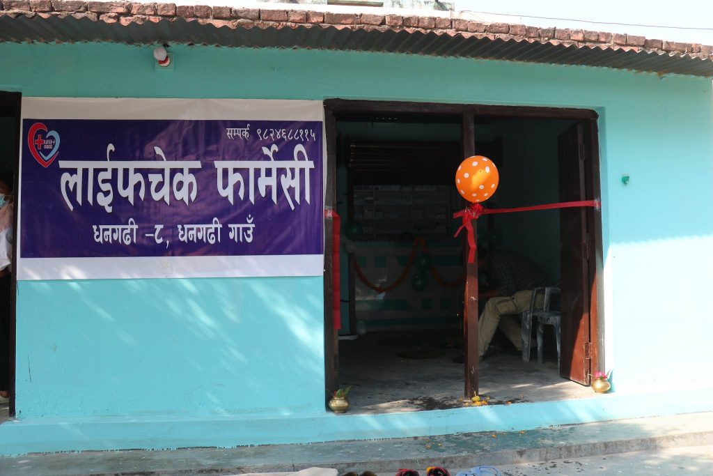 निबा राना/धनगढी, ०९ मंसिर । कैलालीकी धनगढी उप-महानगरपलिका वडा नं. ८ स्थित धनगढी गाँवमे लाइफ चेक फार्मेसीकाे उद्घाटन भओ हए।