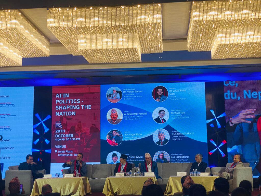 ह्यात प्लेस, काठमाडौंमा आयोजित दुई दिवसीय अन्तर्राष्ट्रिय एआई (AI) सम्मेलनमा प्रविधि, शिक्षा, स्वास्थ्य, कृषि, खेलकुद, र अर्थतन्त्रका विविध क्षेत्रहरूमा एआईको महत्त्व र प्रयोगका सम्भावनाहरूमा गहन छलफल भयो । सम्मेलनमा नेपाल सहितका अन्तर्राष्ट्रिय क्षेत्रका विशेषज्ञ, सरकारी अधिकारी, शिक्षाविद्, व्यवसायिक नेताहरू, र युवा उद्यमीहरूले सहभागिता जनाएका थिए । यो सम्मेलनमा एआईलाई आर्थिक समृद्धिका लागि कसरी प्रयोग गर्न सकिन्छ भन्ने विषयमा गम्भीर संवाद भएको थियो ।